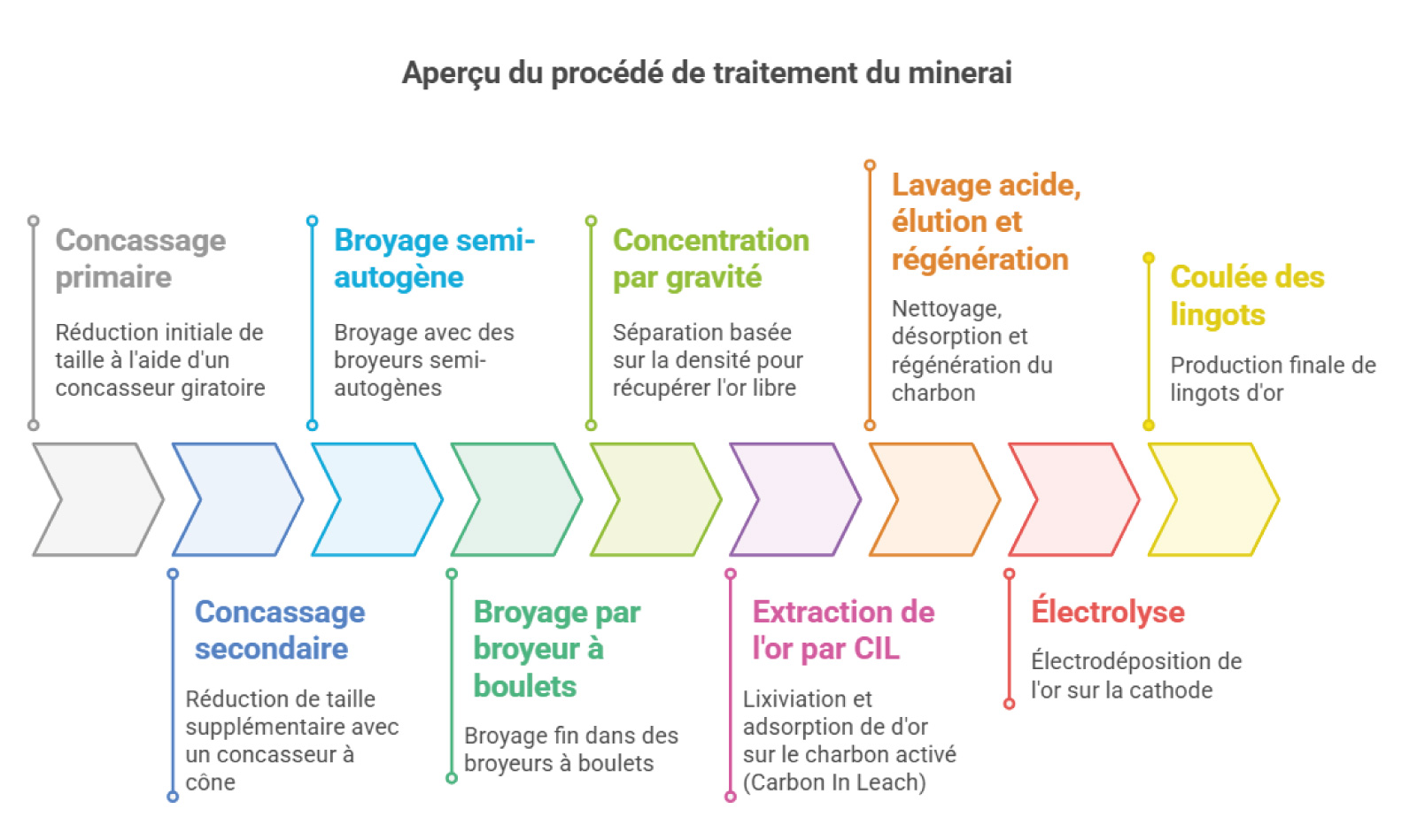 Le procédé de traitement du minerai comprend plusieurs opérations :